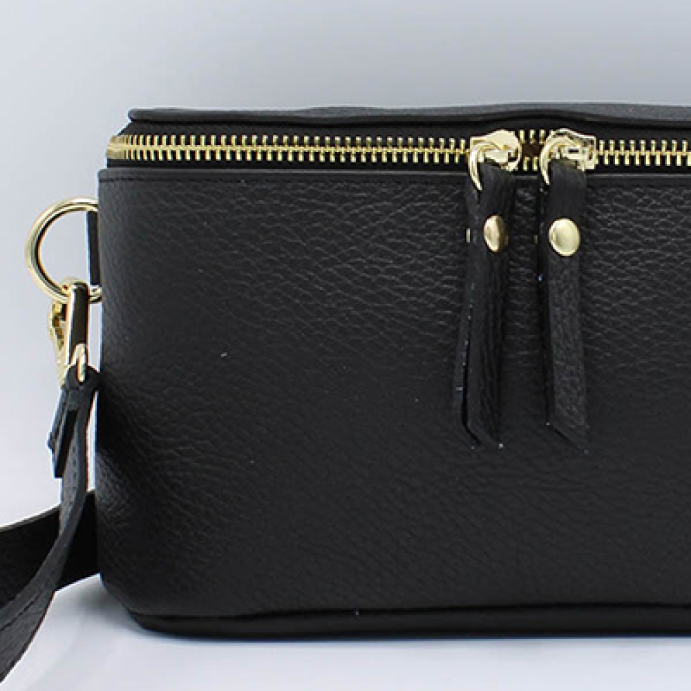 rendy tas van echt leer met stevige verstelbare riem. Deze tas is geheel gevoerd.